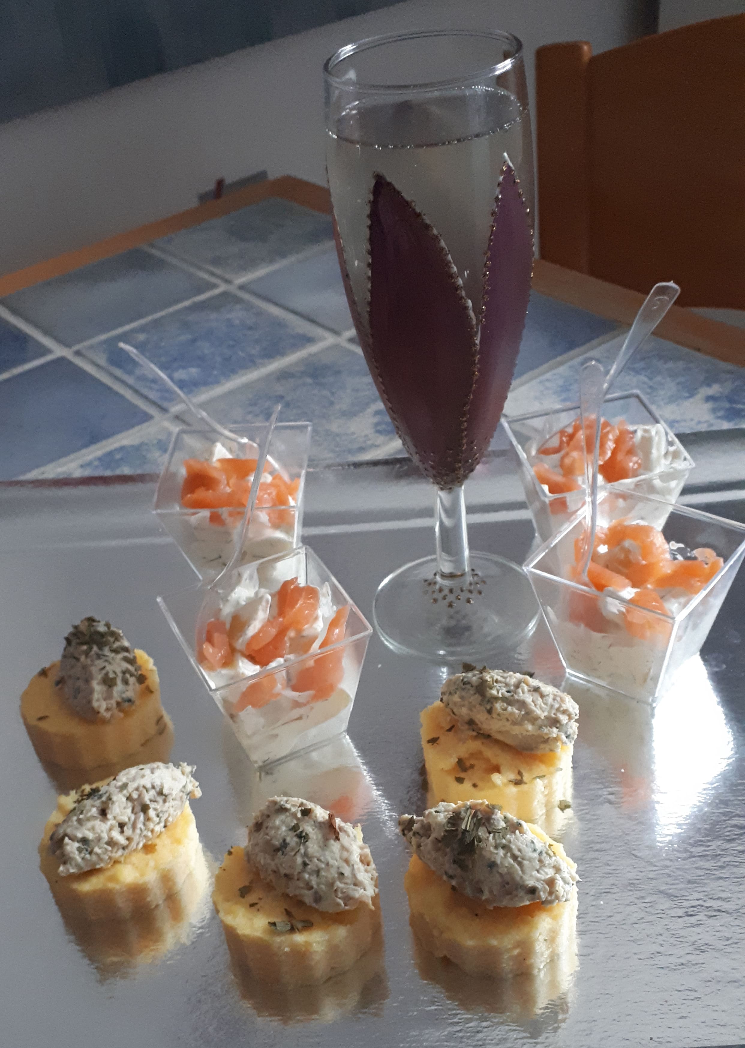 Au menu verrine norvégienne au saumon fumé, bouchée de polenta et mousse de cèpe, le tout accompagné d’une soupe angevine.